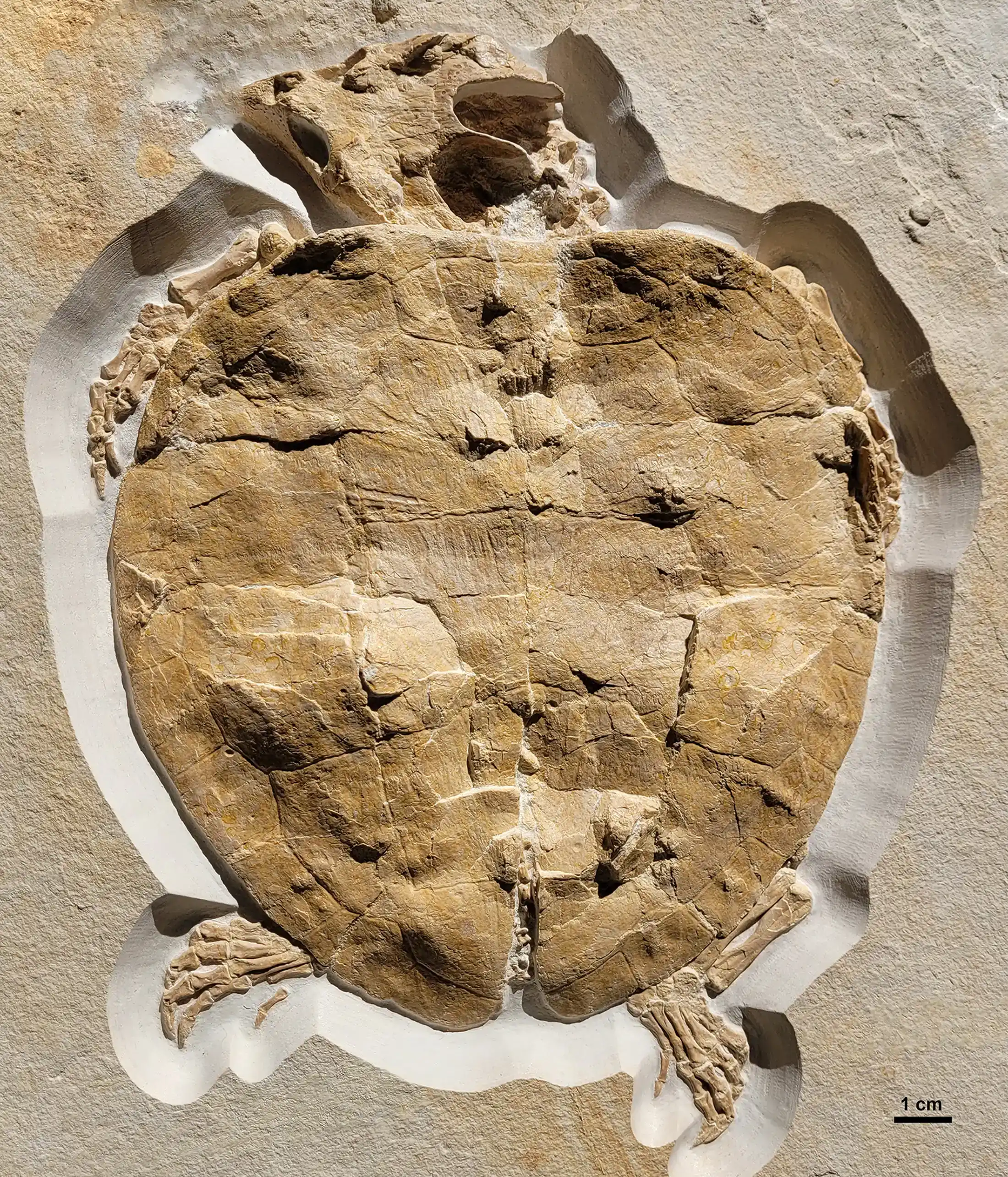 Nahezu perfekt erhalten ist ein weiterer Fund aus dem Jahr 2023 aus dem Rygol Steinbruch nahe Painten bei Regensburg. Neben den Beinen sind auch der Panzer und der Kopf der Schildkröte sehr gut zu erkennen. Der Schnabel ist lang und spitz, der Kopf dreieckig und mit etwas über neun Zentimetern Länge fast halb so lang wie der Panzer. Solnhofia nutzte möglicherweise seinen großen Kopf, um harte Nahrung wie Schalentiere zu zerkleinern, ähnlich wie man es bei einigen heutigen Schildkröten beobachten kann.